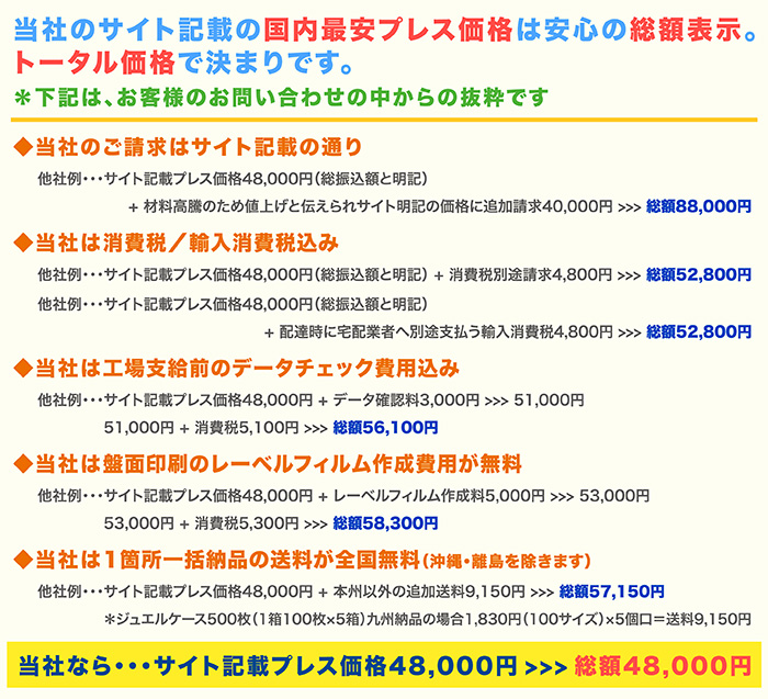 日本最安 日本最速 コストをおえたいお客様のために海外プレスを安心の品質で。