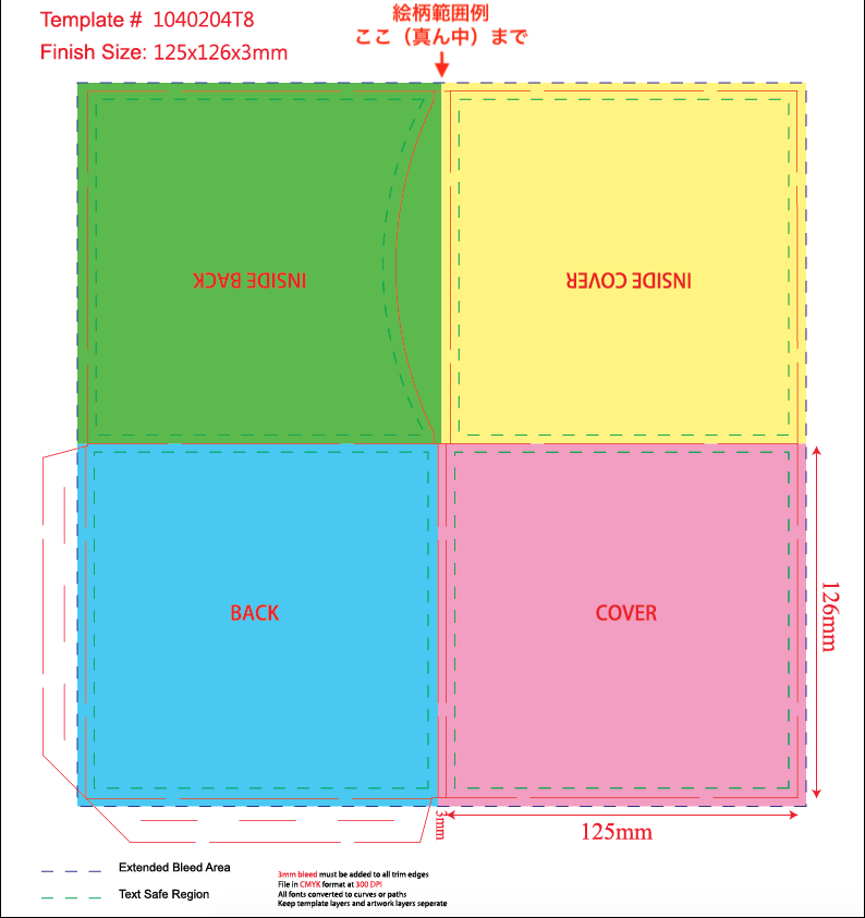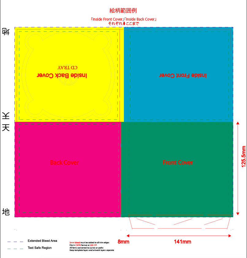 紙ジャケット、デジパックの印刷範囲・塗り足しは、下記イメージ画像もご参照ください。